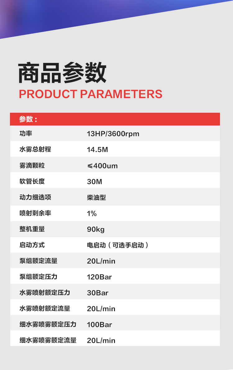 細水霧滅火裝置是采用四沖程風冷發(fā)動機與高壓泵浦配套制造的。具有重量輕便、結(jié)啟動方便、出水快、油耗量低、壓力大、揚程高、滅火效率高工作穩(wěn)定等特點,還對城市森林及缺少水源的場所具有能滅火的優(yōu)點。